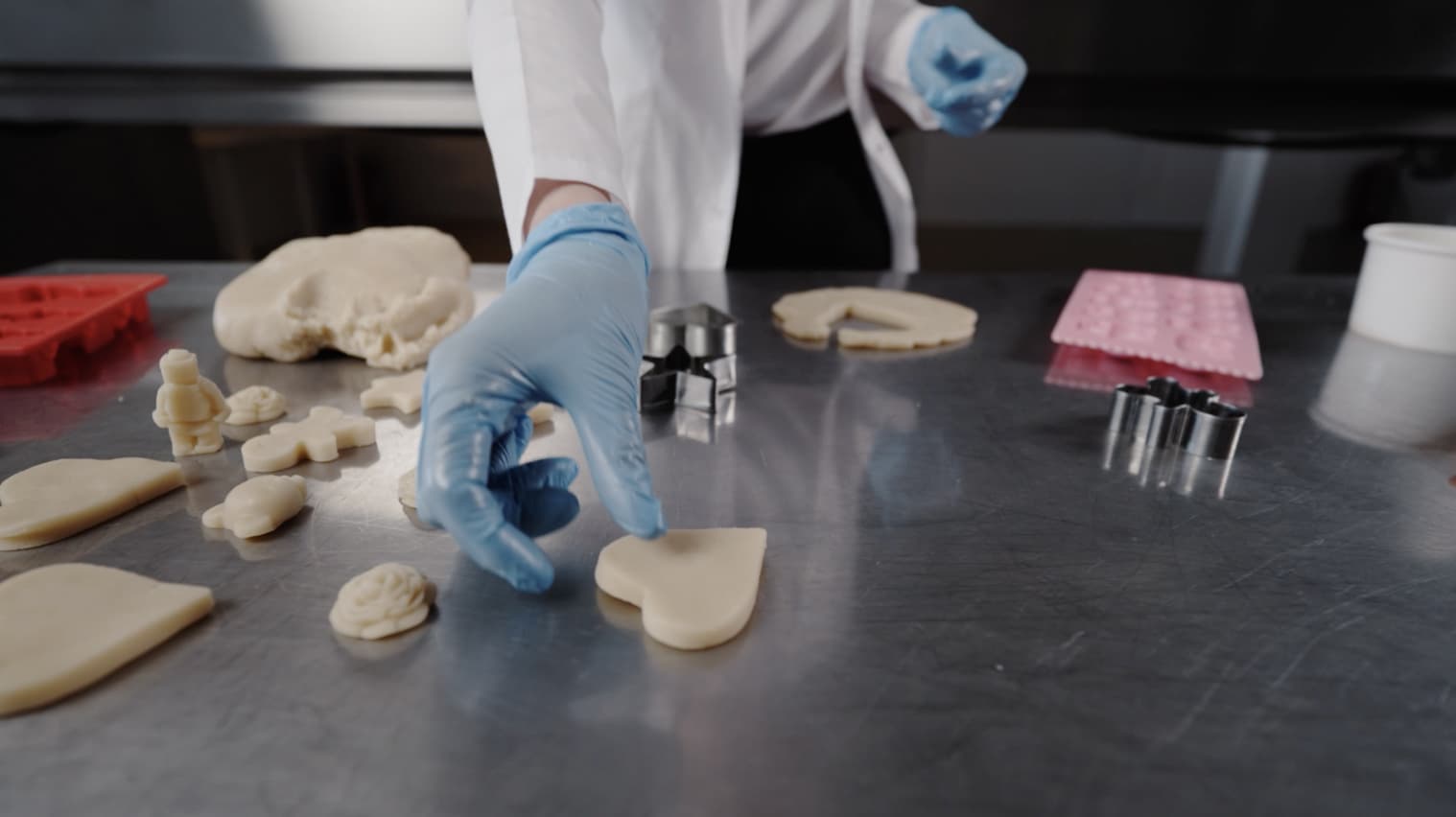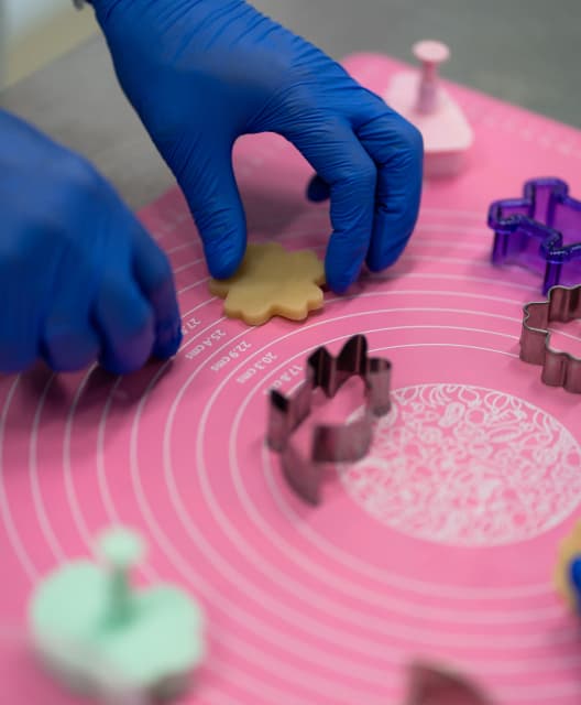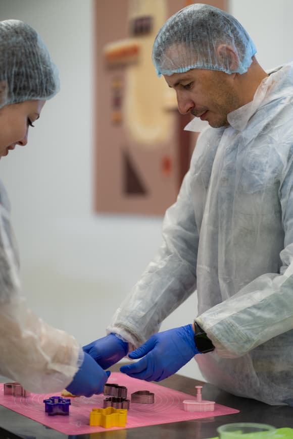 вместе с гостями слепим конфету из марципана, покроем шоколадом на линии глазировки и упакуем в фирменную упаковку