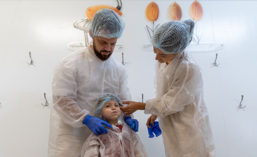 знакомство с процессом производства марципана: демонстрация цеха и оборудования через просмотровое окно, информация о производстве